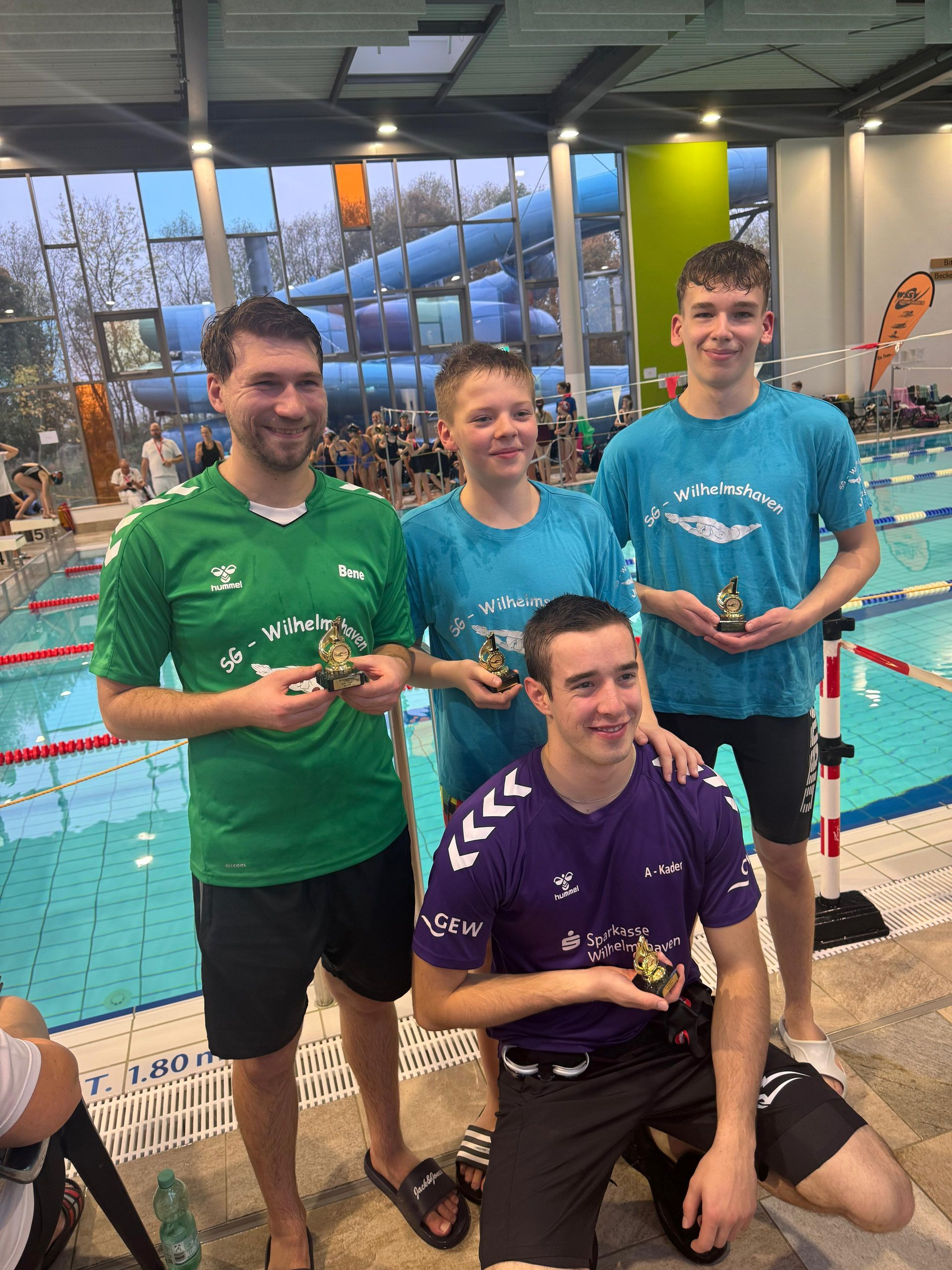 Benedikt Weschenfelder betreute den A-Kader und ging dabei selbst mit einer persönlichen Bestzeit an den Start. Als weiterer Master des A-Kaders nahm Jan Schober erstmals selbst aktiv als Schwimmer am Wettkampfsport teil. Zu den größten Leistungssteigerungen zählten Thure Lerch und Neele Wesseling mit jeweils (5 Sek.) sowie Lenja Binder mit (3 Sek.). Die 4×50-Meter-Lagenstaffel mit Martje Hackmann, Jannes Röder, Sophie Sie und Thure Lerch sicherte sich den ersten Platz. Weschenfelder zog ein positives Fazit: „Die meisten konnten sich noch mindestens eine Bestzeit erschwimmen und die Saison 2025 erfolgreich abschließen.“