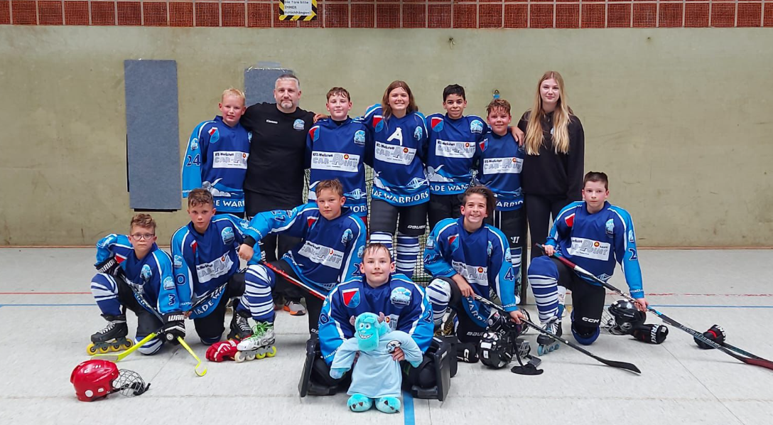 Einen Tag später verwandelte sich die Heppenser Halle in einen Hexenkessel: Die U-16 empfing am vorletzten Spieltag der Jugendliga Nord ihre direkten Konkurrenten. Gleich im ersten Spiel gegen die Bremerhaven Whales zeigten die Warriors, dass sie bereit für den Titelkampf sind. Schon der erste Angriff führte durch Milo Striepens nach Vorarbeit von Anton Stindt zum 1:0. Zwar glichen die Gäste sofort aus, doch Kapitänin Romi Conrads brachte mit einem energischen Solo die Führung zurück. Danach übernahmen die Warriors die Kontrolle: Fynn Stindt erhöhte mit zwei Treffern auf 4:1 zur Halbzeit. Nach Wiederbeginn legte Conrads nach, am Ende stand ein verdienter 8:4-Sieg.