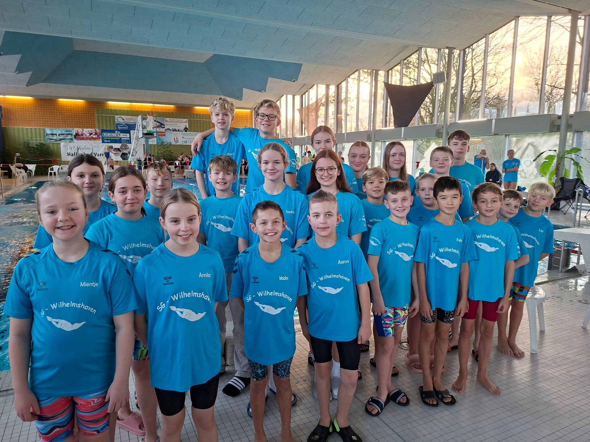 WILHELMSHAVEN - Am vergangenen Sonntag fand im Vareler Hallenbad das Weihnachtsschwimmen 2025 statt. Zu dem vom TuS Büppel ausgerichteten Wettkampf reiste die SG mit ihrem A-, B- und C-Kader an und meldete insgesamt 107 Einzel- sowie 7 Staffelstarts. Daraus resultierten 78 Podestplätze und 67 persönliche Bestzeiten.